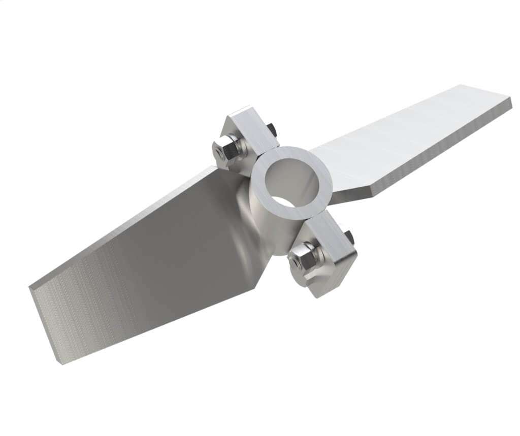 Easily inserted in mixing tank through manhole, Hub is slipped on shaft and placed at any height, Hub held on to mixing shaft by compression exerted by tightening the 4 or 6 bolts on 2 sets of ears (no need of keyway or set screws) IMC’s Axial turbines provide higher mechanical shear than hydrofoils or propellers. IMC’s turbine blades are cut with the latest technology available on abrasive waterjets to guarantee the highest degree of accuracy. Bores are CNC machined at our state-of-the-art facility to high tolerances. Finished blades then are TIG welded to the hub, achieving the highest quality and the strongest weld. IMC’s axial flow turbines are excellent corrosion resistant, and durable all made in the US. Custom Bore sizes and keyways can be provided. Just contact us to request a quote on these options.